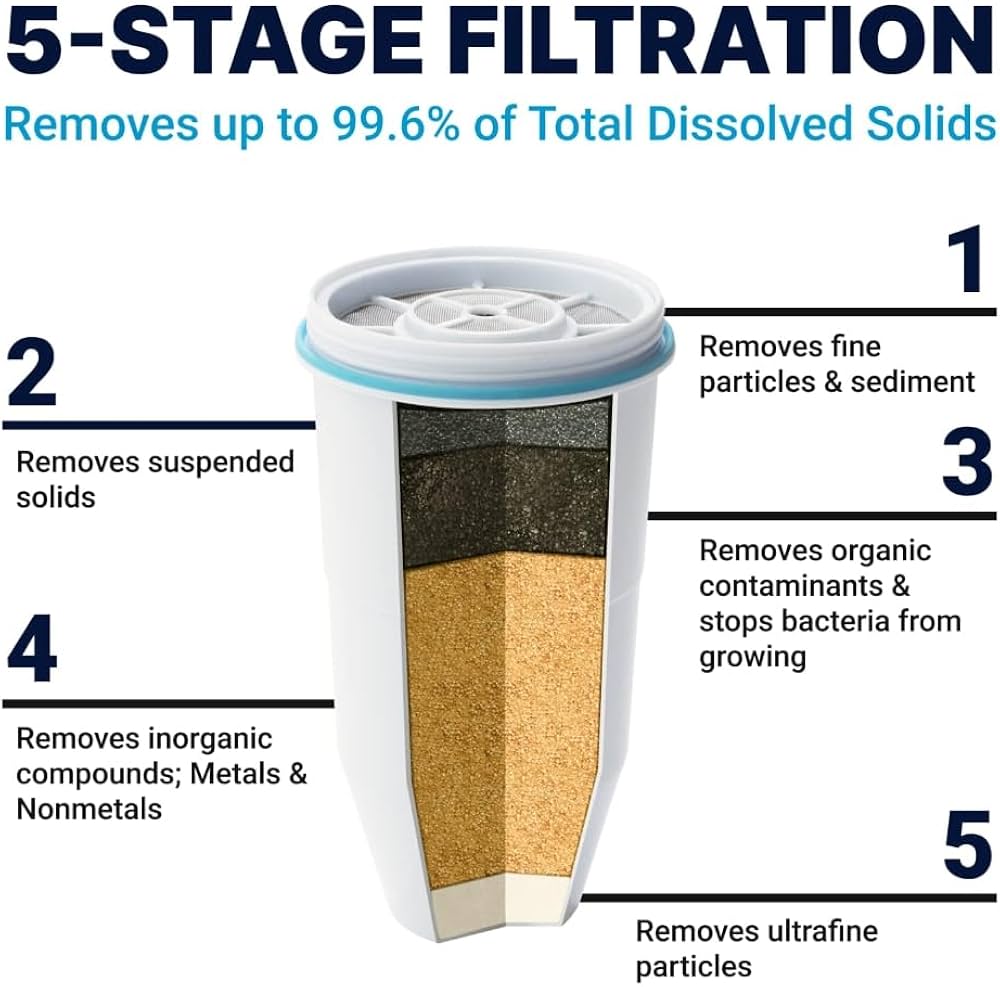 - عمر الفلتر: كل فلتر مياه مُصمم للاستخدام حتى 20 غالون (حوالي 75 لتر)، لكن المدة تعتمد على كمية المواد الصلبة الذائبة (TDS) في مياه الصنبور لديك. إذا كان مستوى TDS مرتفعًا، قد يكون عمر الفلتر أقصر